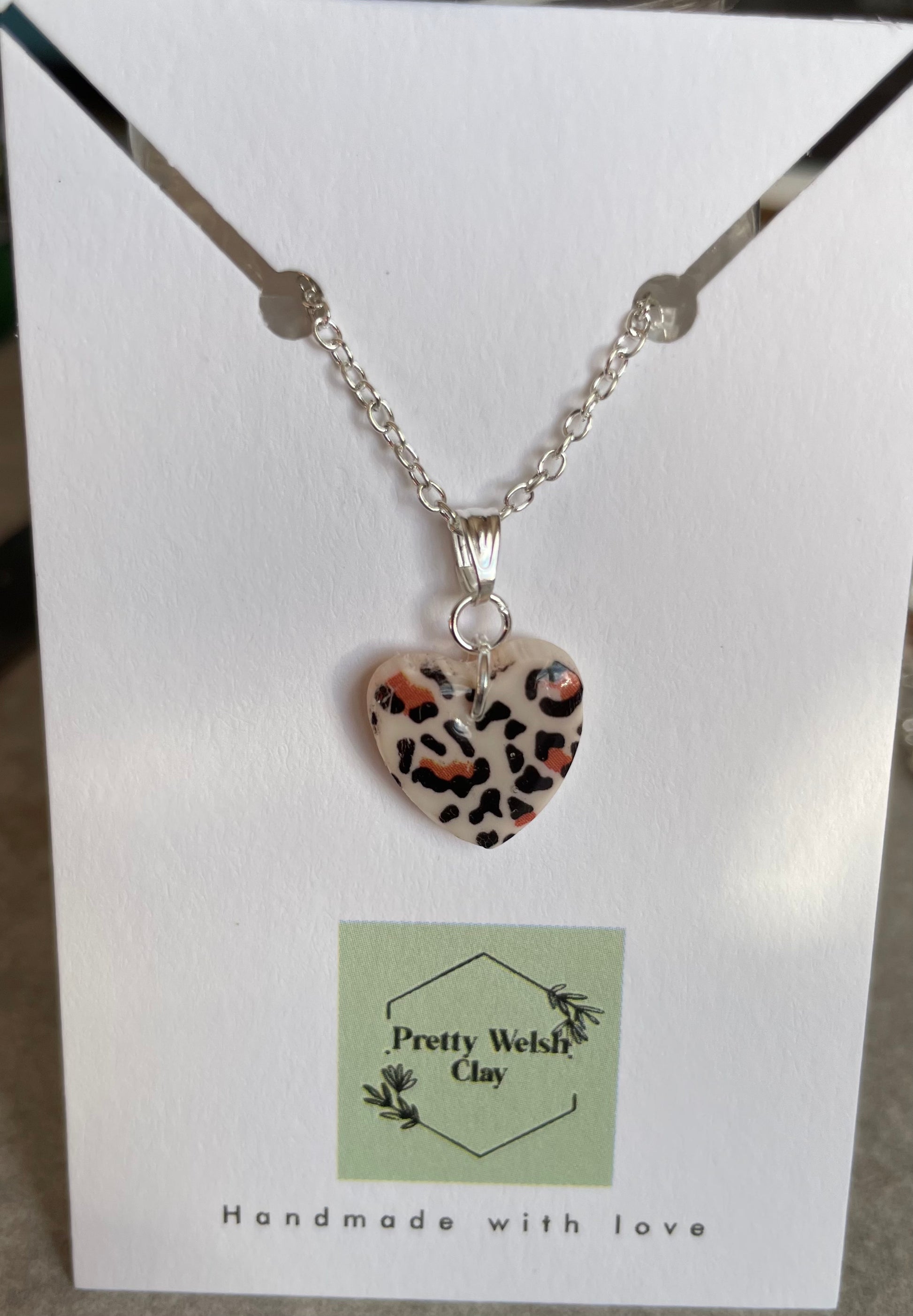 White leopard print heart necklace